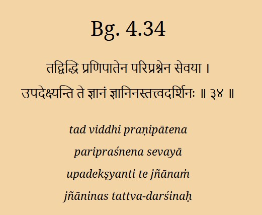 “Just try to learn the truth by approaching a spiritual master. Inquire from him submissively and render service unto him. The self-realized souls can impart knowledge unto you because they have seen the truth.”