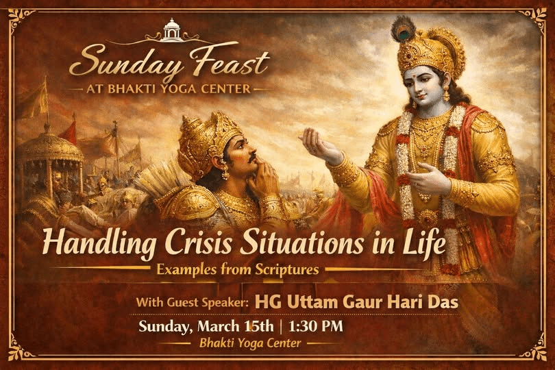 You are warmly invited to join us for our weekly Sunday feast at the Bhakti Yoga Center! This week, we are honored to welcome HG Sakshi Gopal Dasa as our guest speaker.